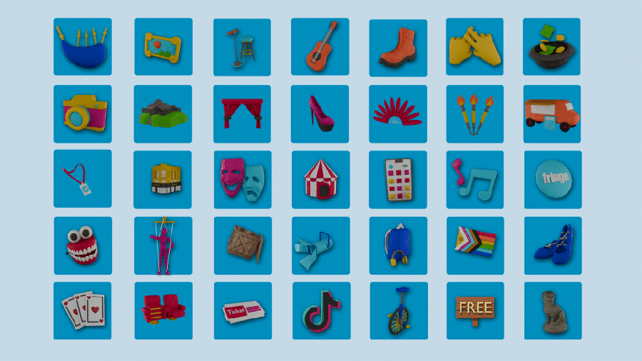 For 2024, we developed Unleash Your Fringe, a digital-first, modular campaign designed to scale effortlessly across platforms and audiences. The creative toolkit centred on playful 3D objects that could be mixed, matched, and repurposed for different contexts; from social posts aimed at young theatre-goers to broader city-wide activations.
