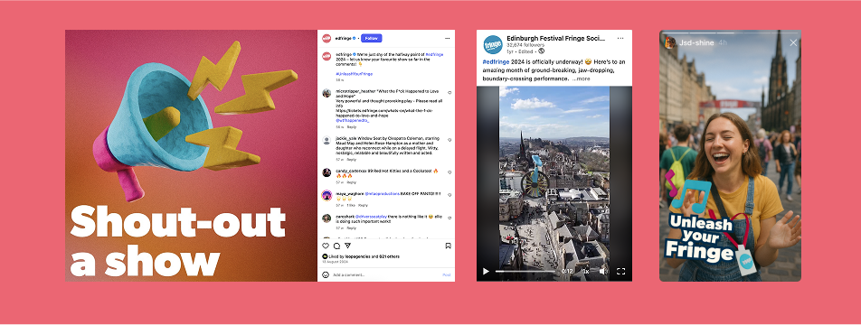 For 2024, we developed Unleash Your Fringe, a digital-first, modular campaign designed to scale effortlessly across platforms and audiences. The creative toolkit centred on playful 3D objects that could be mixed, matched, and repurposed for different contexts; from social posts aimed at young theatre-goers to broader city-wide activations.
